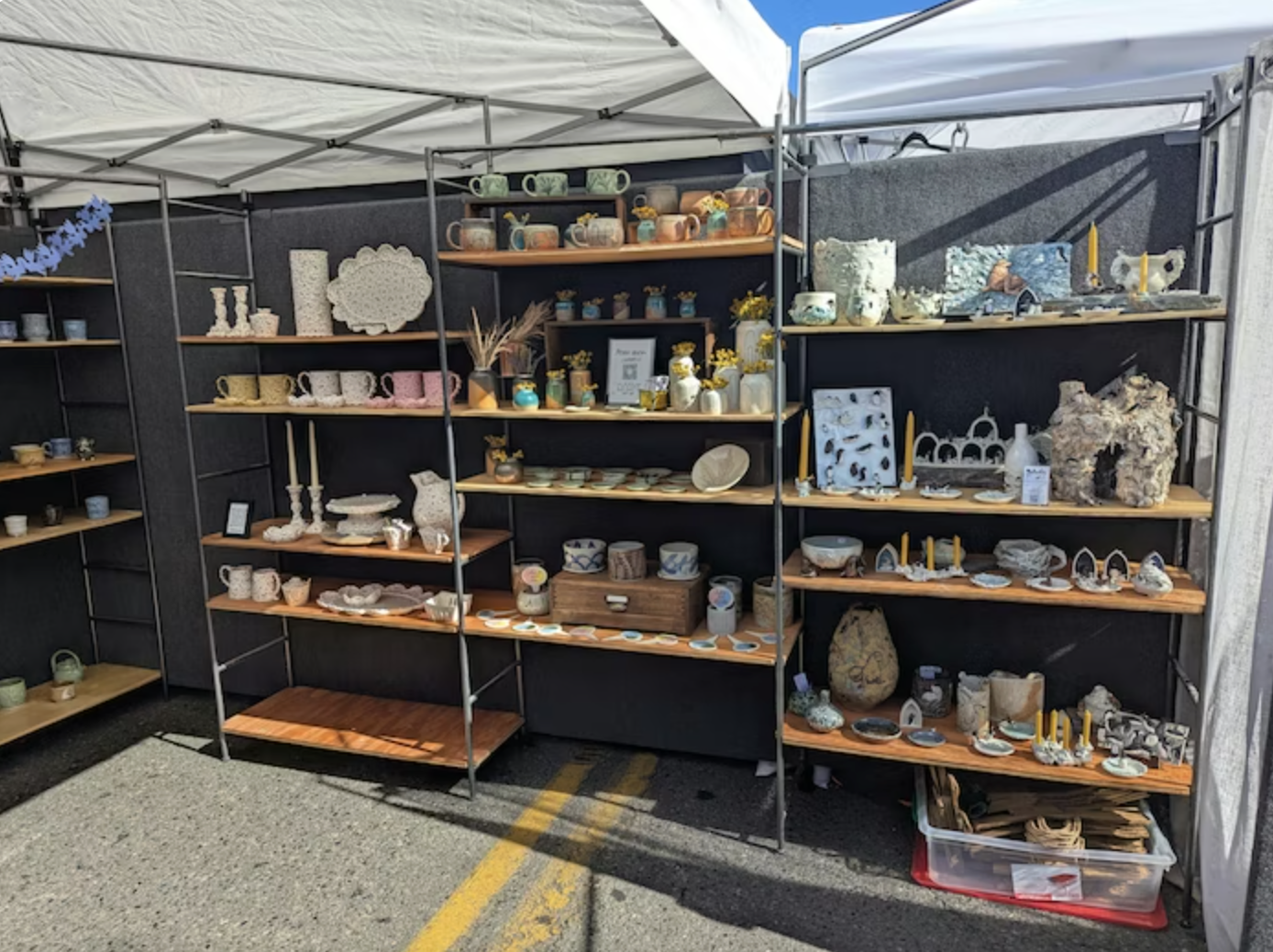 There will be 12 bays (a zone in the craft fair booth) with three shelves each.
